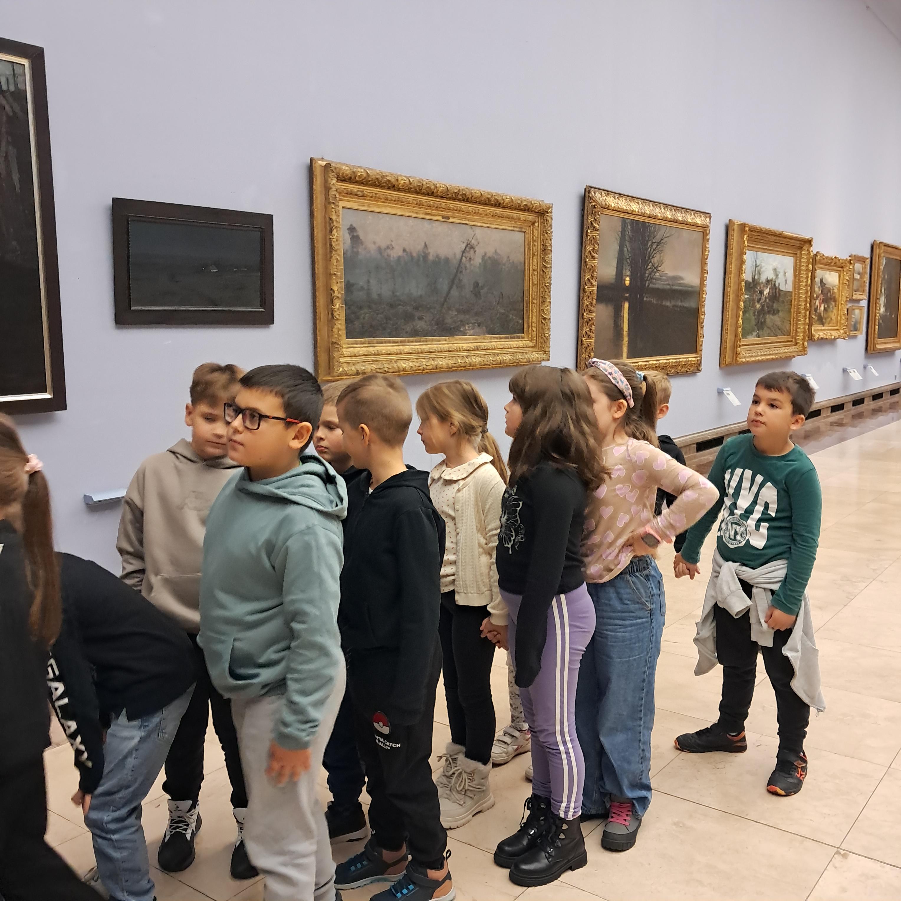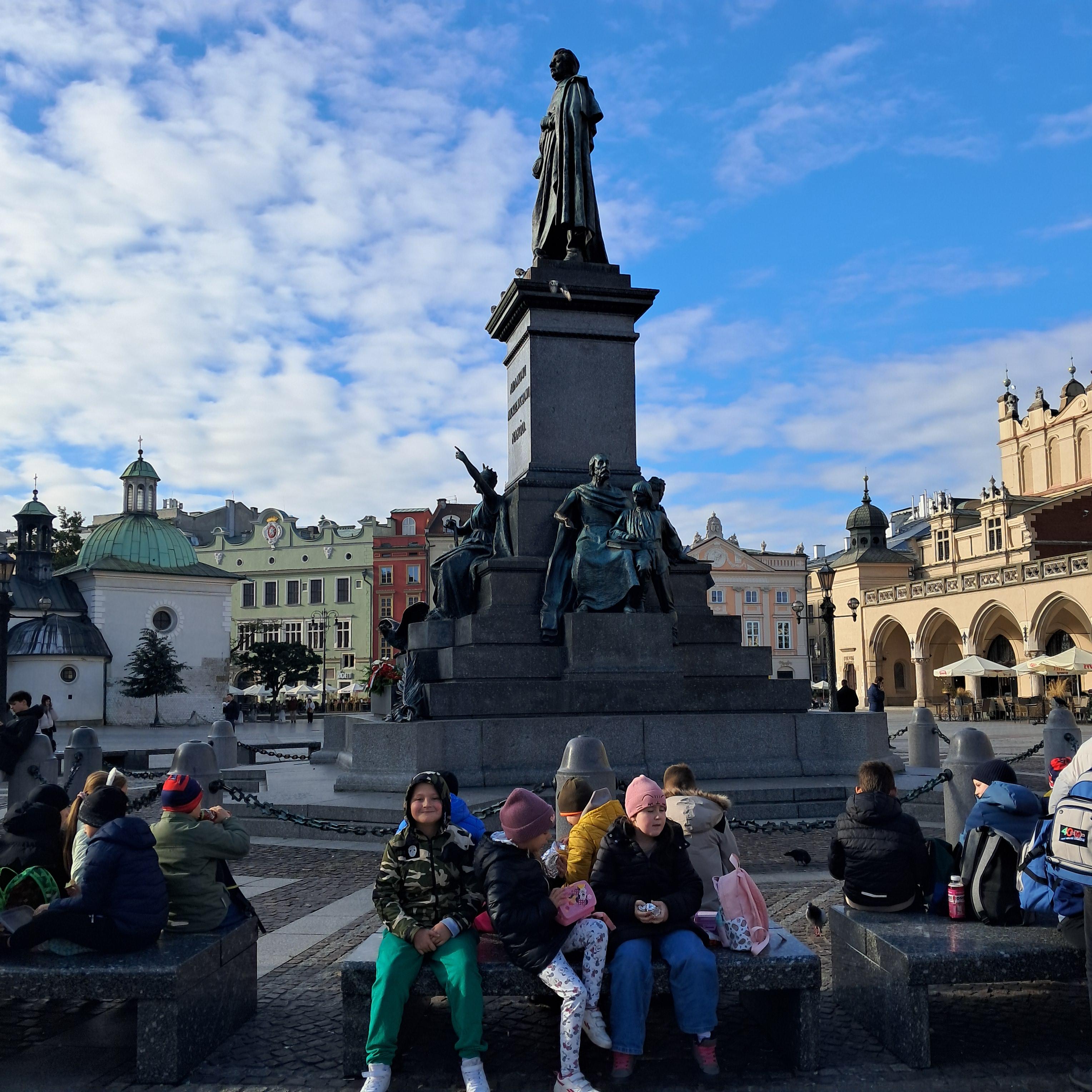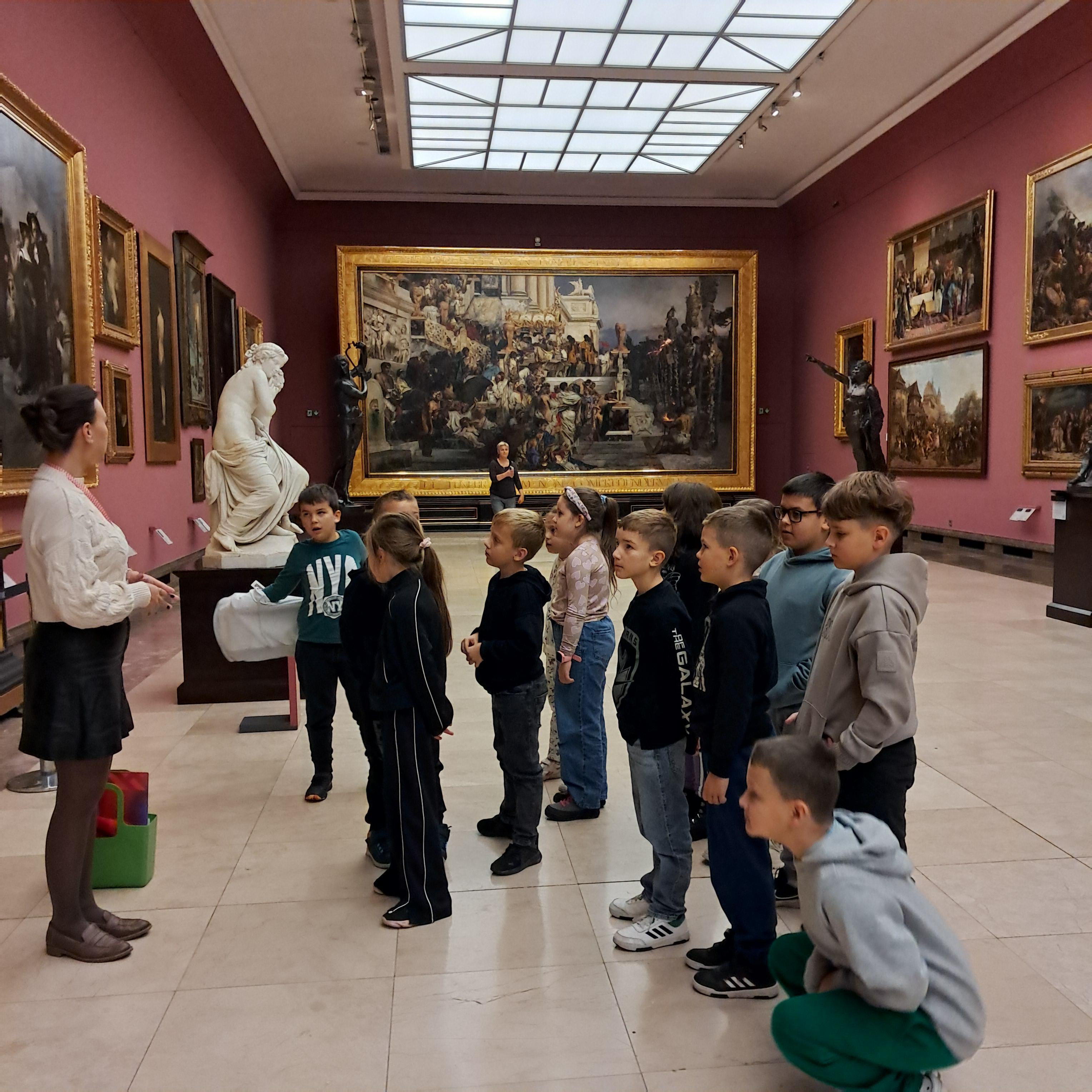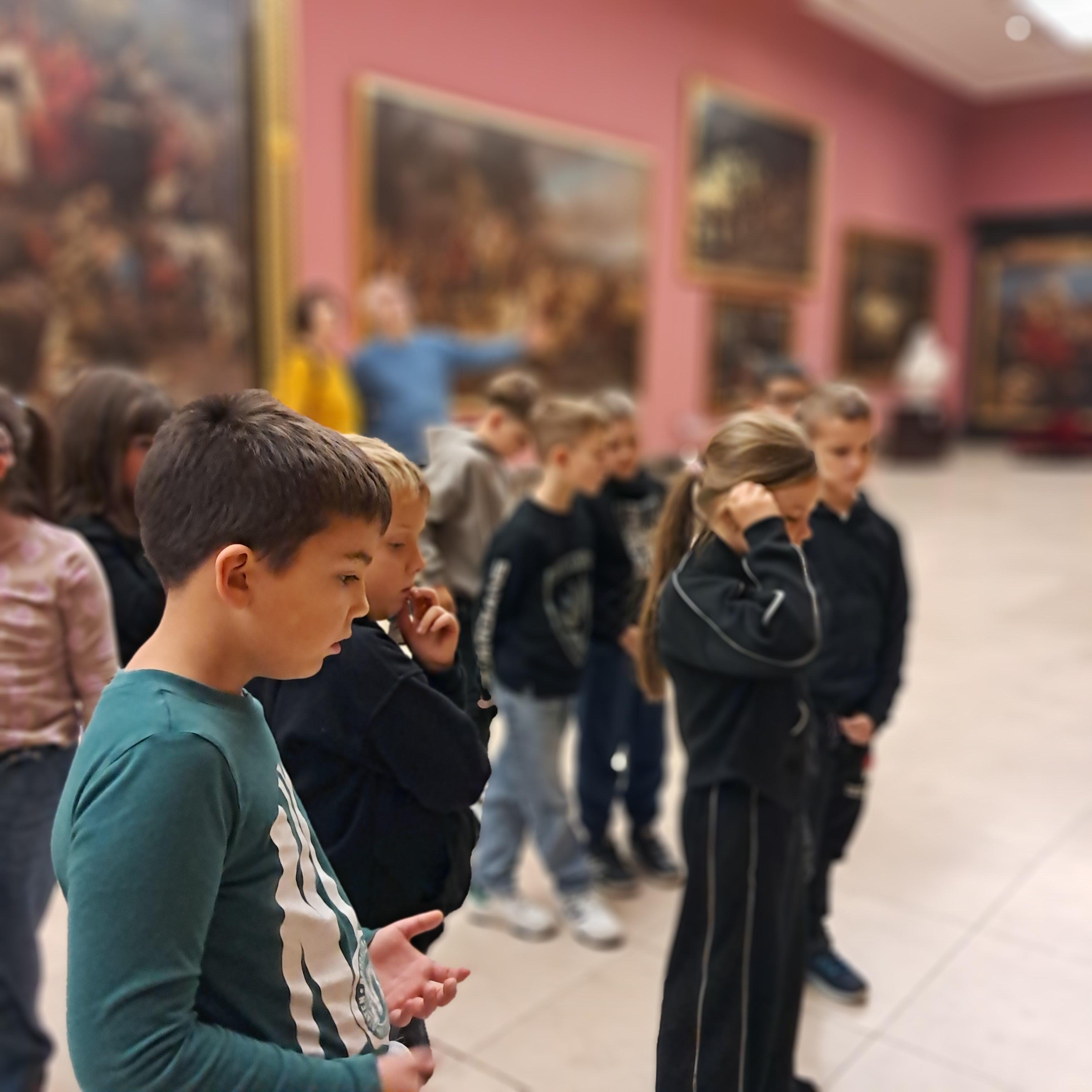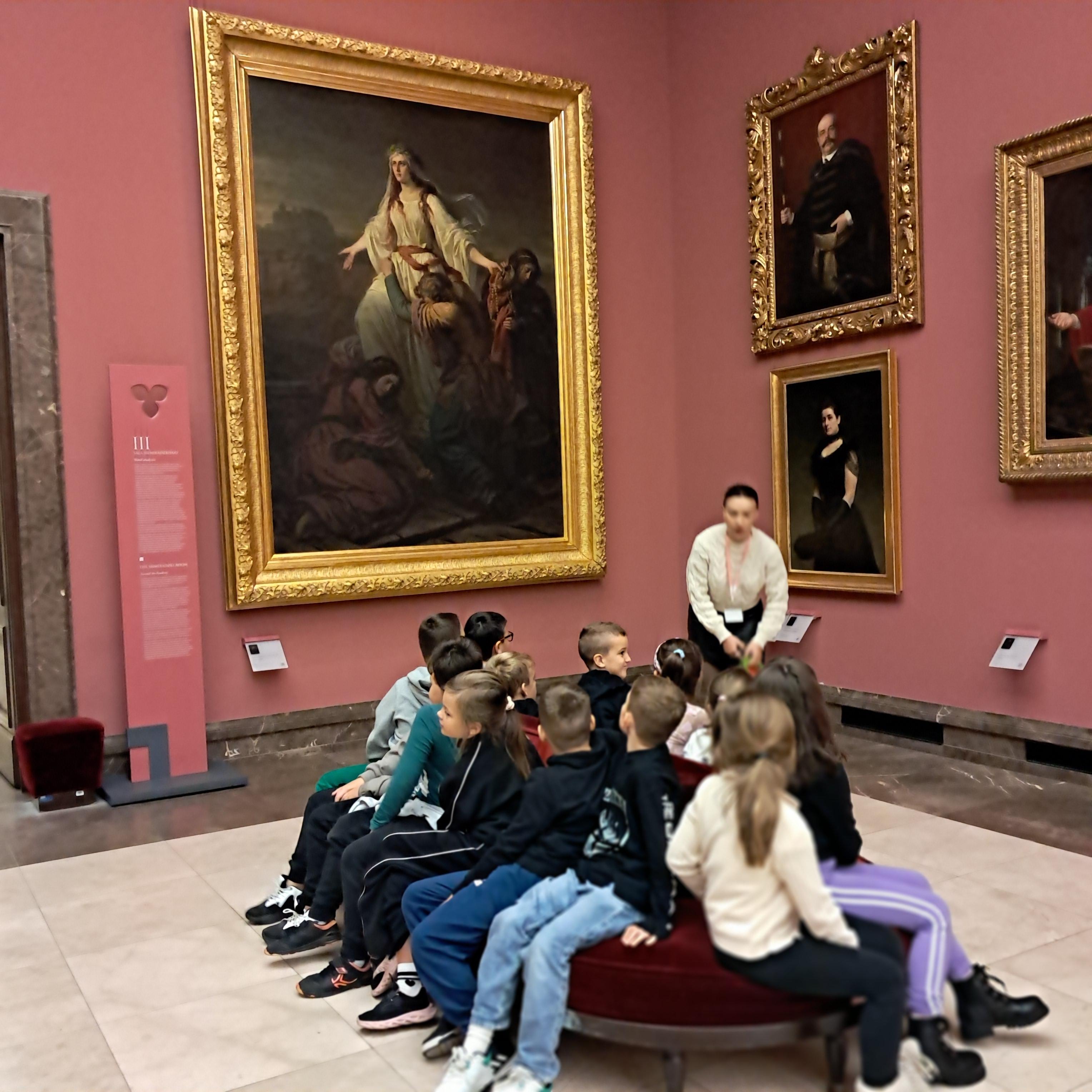 16 października 2025 r. klasa 2 wybrała się na wycieczkę do Muzeum w Sukiennicach. Uczniowie z zaciekawieniem podziwiali słynne obrazy polskich malarzy, między innymi Jana Matejki i Józefa Chełmońskiego. Przewodnik ciekawie opowiadał o historii obrazów, życiu artystów oraz legendach krakowskich przedstawionych na obrazach. Dzieci z zaciekawieniem rozpoznawały postacie z opowieści i uczyły się, jak sztuka pomaga utrwalać legendy. Wycieczka była ciekawą lekcją historii i sztuki.